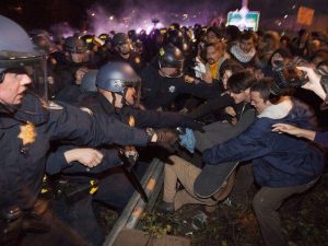We also need to hit back against capitalism and the state, and seize the means to sustain our lives and resistance. Encampments around the world, from Tahrir Square to Occupy Oakland, did this in miniature. Now we have to start thinking and acting bigger. To overcome the police, white supremacy and capitalism, we will have to occupy state offices, city halls, and police stations; take over our schools, workplaces and transit systems; and provide education, health care, transport, goods and services to our communities for free. We can start by building groups with others who’ve been protesting, and with people where we work, learn and live.