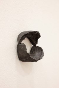 With Pimentao’s ‘Disequilibrium Displacement’, the gallery has provided us a brief text. It details for the reader how the works we see came to be. As discussed above, it outlines a clever artistry behind the works formal arrangement. With the work in each case finally amounting to something other than what may be perceived on first glance. In fact, the accuracy of Pimentao’s ‘falsification’ of common materials, using just simple art materials is something we can only trust. The gallery conditions do not permit us to touch and feel for ourselves, but if we could, we would immediately know what we already thought. Namely that paper covered by graphite does not feel like wood or metal. The tactile answer would be all that we should need to settle any realm of confusion. It is this failure to supply a tactile answer that we see repeated throughout the show.